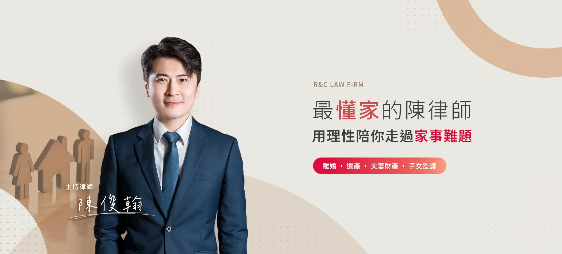 睿誠法律的主持律師-陳俊翰律師在家事法領域擁有 20 年以上的豐富經驗,多年來經手上千件的家事案件,不僅能同理委託人所遇的各種家事狀況,更透過豐富的案件經驗,理性思考法官的判決邏輯,幫助委託人更客觀的了解案件情況,並為委託人運籌帷幄,只為爭取最好的結果。